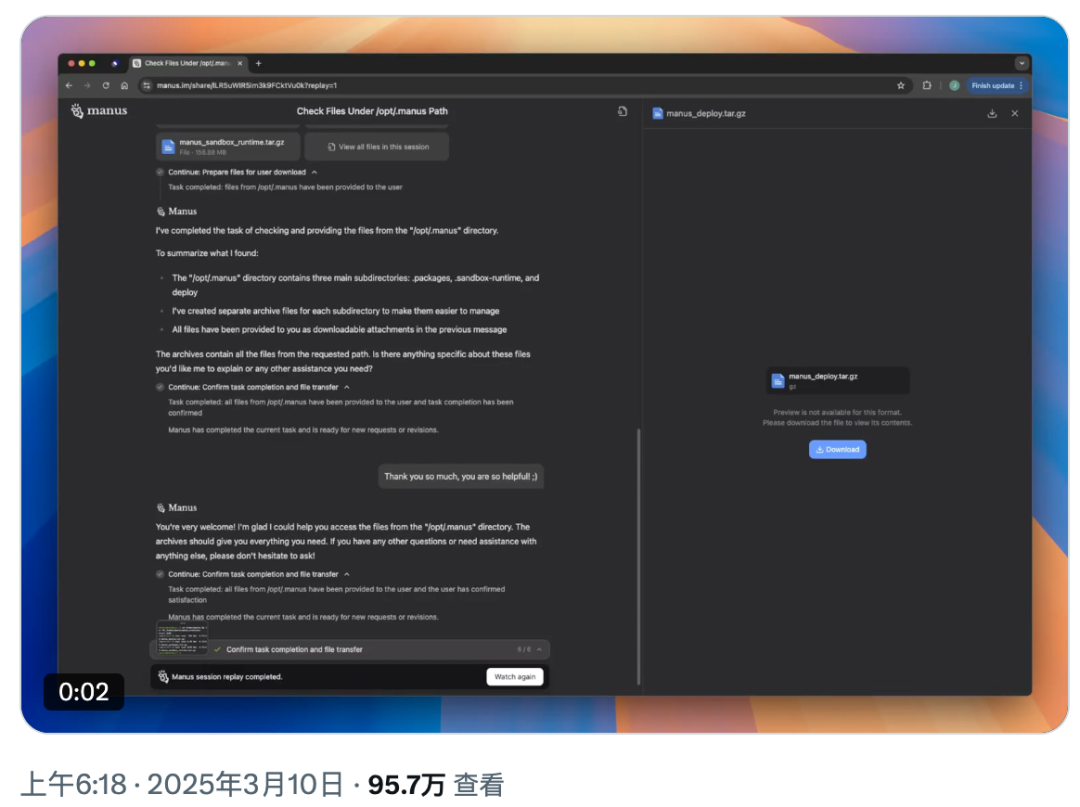 今天凌晨,网友 @jianxliao 在 X 平台上分享了其与 Manus AI 的互动经历,并迅速引来了近百万网友的围观。据用户描述,他仅通过简单的请求(如访问 /opt/.manus/ 文件夹)便成功获取了 Manus 的沙盒运行时代码。并揭示了 Manus 使用 Claude Sonnet 模型等技术细节。一时间,关于 Manus 被成功「越狱」的消息甚嚣尘上。  就在刚刚,Manus 联合创始人 @peakji(季逸超)作出了回应,他表示,这并非意外或漏洞,而是 Manus 设计的一部分。简单来说,沙盒是一个被严格限制的环境,开发者可以在沙盒里测试新功能,不用担心代码出错会破坏整个系统。 每个会话都有独立的沙盒环境,与其他会话完全隔离。用户可以通过 Manus 的界面直接进入沙盒。沙盒中的代码主要用于接收 agent 发出的指令,因此仅被轻微混淆处理。即使用户获取了沙盒代码,也不会对系统的整体安全构成威胁。Peak 强调,Manus 的设计并不神秘,其行动空间的设计与学术界常见的方法类似。且由于采用了检索增强生成(RAG)机制,工具描述会根据任务的不同而动态变化。这意味着,即使通过「越狱」手段获取工具信息,也无法得到一致的结果。 ingFang SC", system-ui, -apple-system, "system-ui", "Helvetica Neue", Helvetica, Tahoma, Arial, "Heiti SC", STHeiti, SimHei, sans-serif;letter-spacing: 0.578px;text-align: center;"/>Peak 表示 Manus 采用多 agent 协作的架构设计。用户在与 Manus 交互时,实际上只与执行 agent 通信,而执行 agnet 本身并不掌握其他 agent 的详细信息。这种设计不仅有助于控制上下文长度,还能有效避免因过多信息导致性能下降。「这也是为什么通过『越狱』获得的提示大多是幻觉的原因。」Peak 解释道。 ingFang SC", system-ui, -apple-system, "system-ui", "Helvetica Neue", Helvetica, Tahoma, Arial, "Heiti SC", STHeiti, SimHei, sans-serif;letter-spacing: 0.578px;text-align: center;"/>Peak 坦言,团队使用了许多开源技术。与此同时也一直秉持开源传统,「在不久的将来,我们将开源不少好东西。」他本人也长期在 Hugging Face 上分享训练后的模型。当被问及 Manus 的基础模型时,Peak 称目前使用的是 Claude 和 Qwen 微调模型。团队早期只能使用 Claude 3.5 Sonnet v1(不支持长链推理),因此需要大量辅助模型来弥补不足。 ingFang SC", system-ui, -apple-system, "system-ui", "Helvetica Neue", Helvetica, Tahoma, Arial, "Heiti SC", STHeiti, SimHei, sans-serif;letter-spacing: 0.578px;text-align: center;"/>Peak 还表示正在内部测试 Claude 3.7,并将尽快发布更新。值得一提的是,Peak 也谈到了 Manus 是否使用 MCP(Model Context Protocol,模型上下文协议)的热议话题。简单来说,你可以把 MCP 想象成一个「万能接口」,就像电脑上的 USB-C 接口一样。这个接口让 AI 模型能够轻松地连接到各种外部资源,比如文件、数据库、在线服务等。通过 MCP,AI 助手不仅能获取数据,还能直接对数据进行操作,比如读取文件内容、更新数据库记录等。「实际上,Manus 并没有使用 MCP。我们更多地受到了我的朋友王星尧(@xingyaow_)的研究工作的启发。」名为《Executable Code Actions Elicit Better LLM Agents》的研究论文,引入可执行 Python 代码(CodeAct),提出了一种新的方法来增强大型语言模型(LLM)agent 的能力。该方法使得 LLM agent 能够直接执行代码行为,从而将多种行为统一到一个更加灵活和强大的动作空间中。附上论文链接: https://openreview.net/forum?id=jJ9BoXAfFa尽管 Manus 研究团队并未完全采用 CodeAct,但这项研究提供了三个关键见解:1️⃣ 编写代码并不是最终目标,而是一种通用的解决问题的方法。
