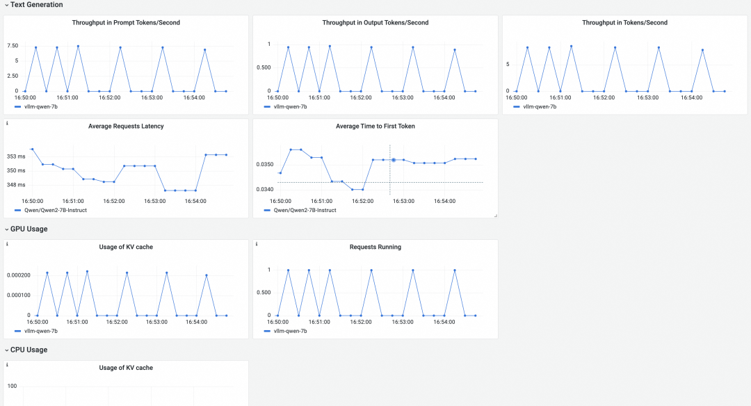 从官方示例上看,DeepSeek 兼容 OpenAI 的 SDK 调用请求,阿里云 Python Agent 支持 Open AI SDK 自动化埋点,所以默认兼容 DeepSeek 场景自动化埋点采集能力,实现低成本采集各种请求类指标。另外,针对基于 vLLM 加速框架的模型服务进行自动化埋点采集,可以从模型服务端视角获取更多的性能评估指标,从而可以弥补部分场景客户端视角采集不全的短板。