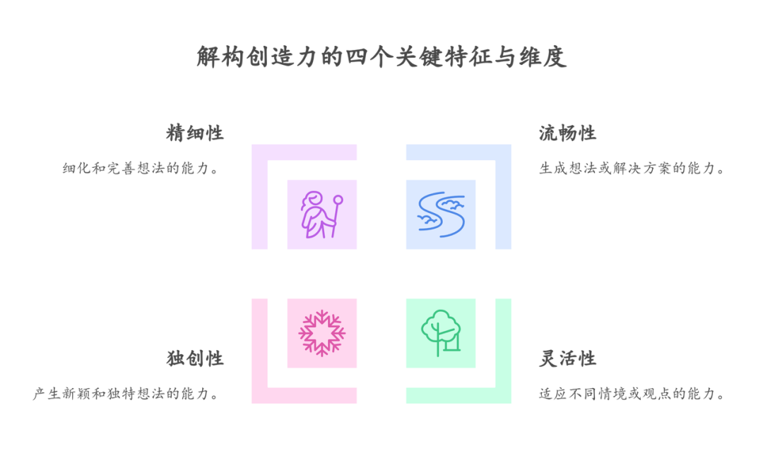 独创性(Originality)——产生新颖、独特、非常规想法的能力,能够超越传统思维模式。