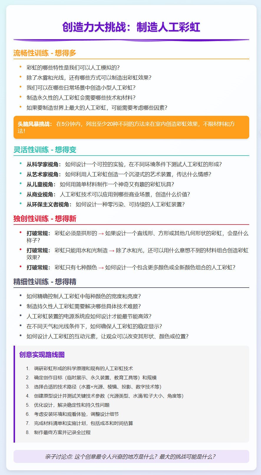 '底部提示':'亲子讨论点: 这个创意最令人兴奋的地方是什么?最大的挑战可能是什么?':'18号字体,斜体,居中'