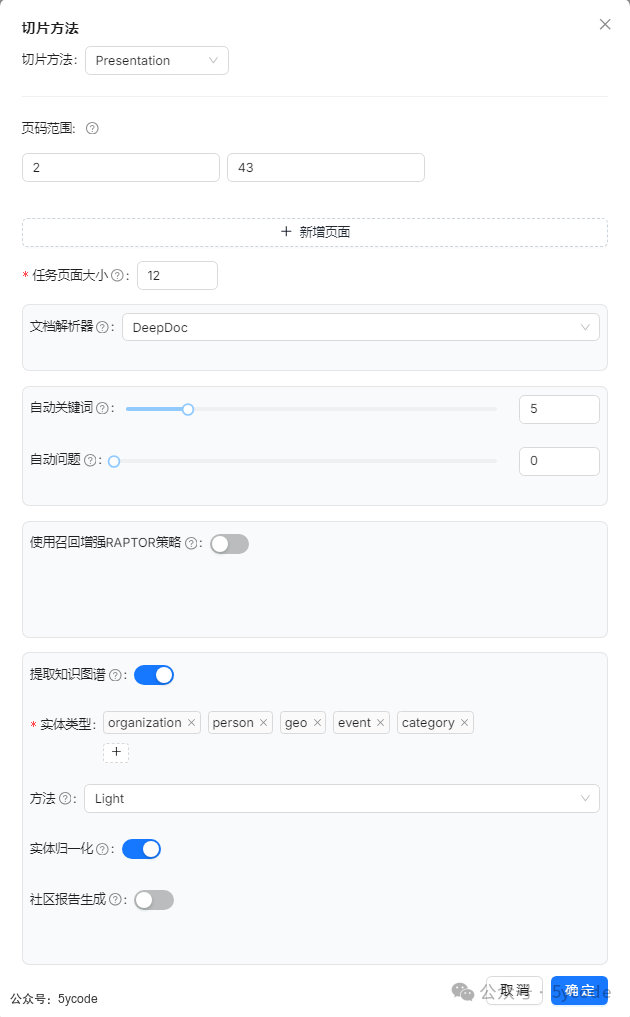 方法ragflow提供两种方法可以选择。 - Light:实体和关系提取提示来自 GitHub - HKUDS/LightRAG:“LightRAG:简单快速的检索增强生成”