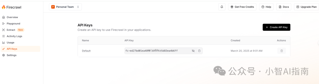 分别登录Firecrawl 和 Notion 平台获取一下 API Key