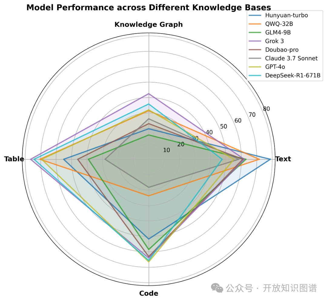 随着大语言模型(LLMs)的快速发展,最新一代推理型模型(如 OpenAI o1、DeepSeek R1、Grok 3、Claude 3.7 Sonnet 等)在自然语言理解与推理任务中表现出显著进步。尽管已有多项研究[1-4]从不同维度对 LLM 能力展开评估,但这些评测体系主要集中在通用理解和基础推理层面,缺乏模型在处理多类型异构知识与跨领域复杂推理任务中的系统性评估。特别是在知识增强场景下,模型如何有效利用外部知识源进行高质量推理的能力评估仍是研究空白。