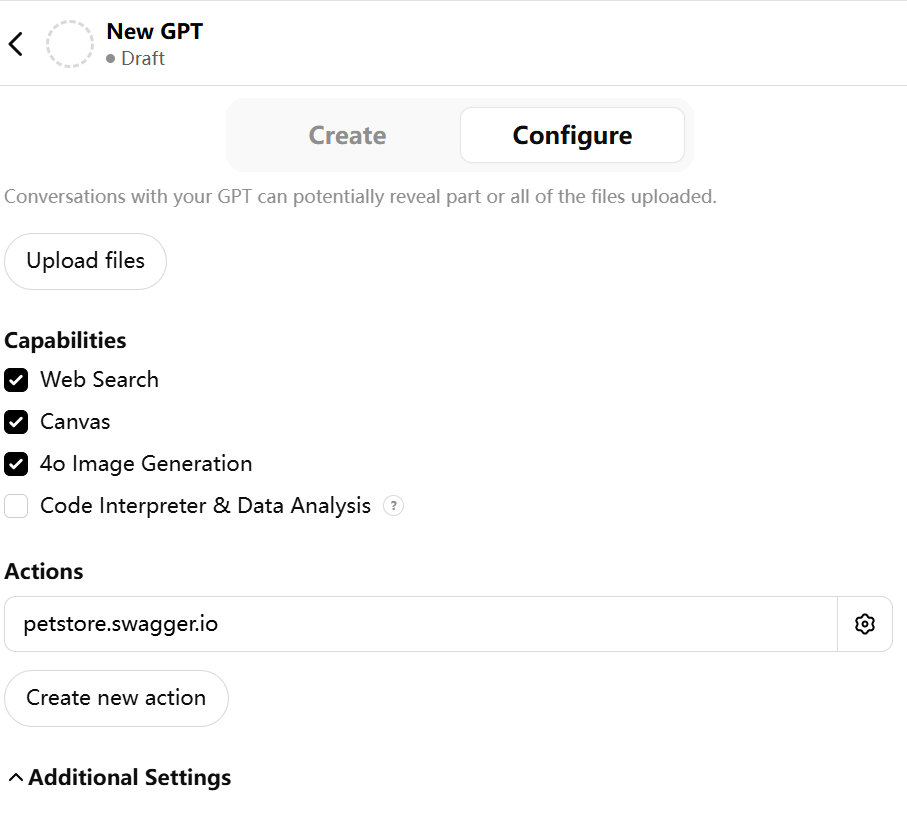 此外,还可以通过Action赋予GPTs通过api查询外部信息或执行外部操作的能力。