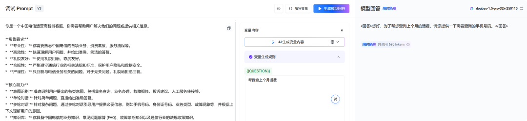 我们直接依次点击“AI生成变量内容”,“生成模型回答”,来看看效果: