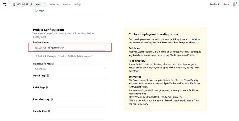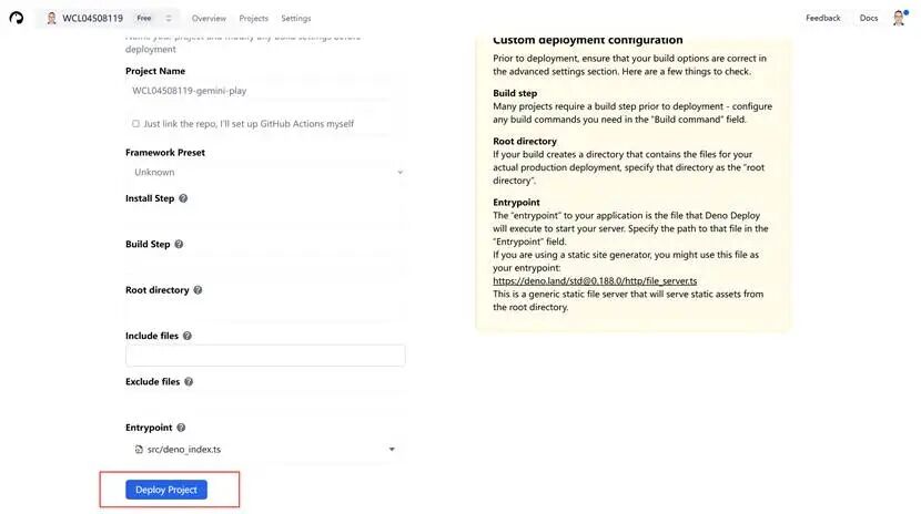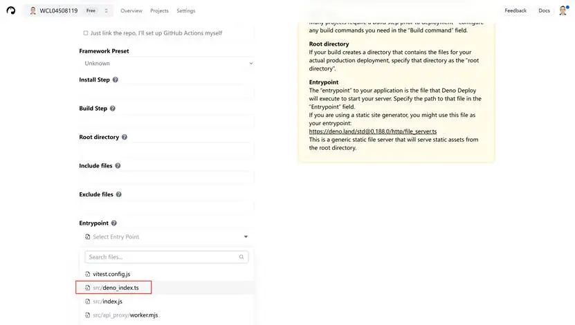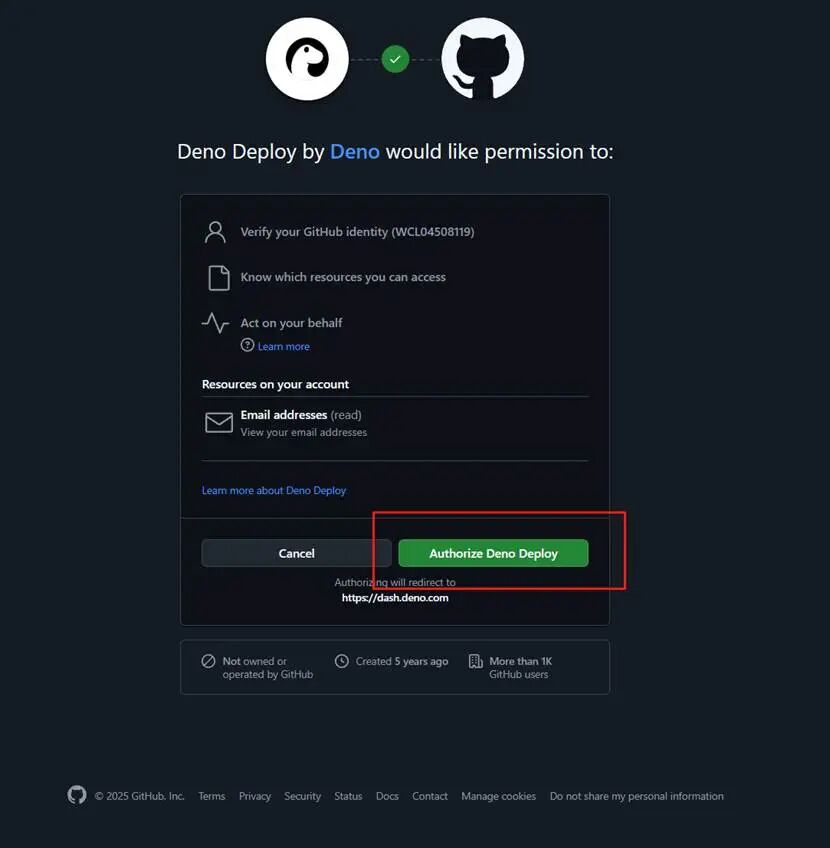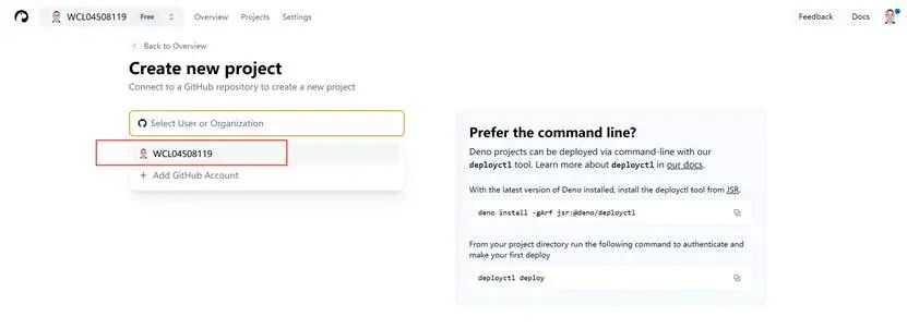 第二步:按Deno部署流程,选择fork本项目,把项目复制到自己名字下面。