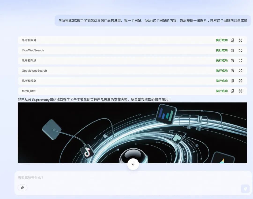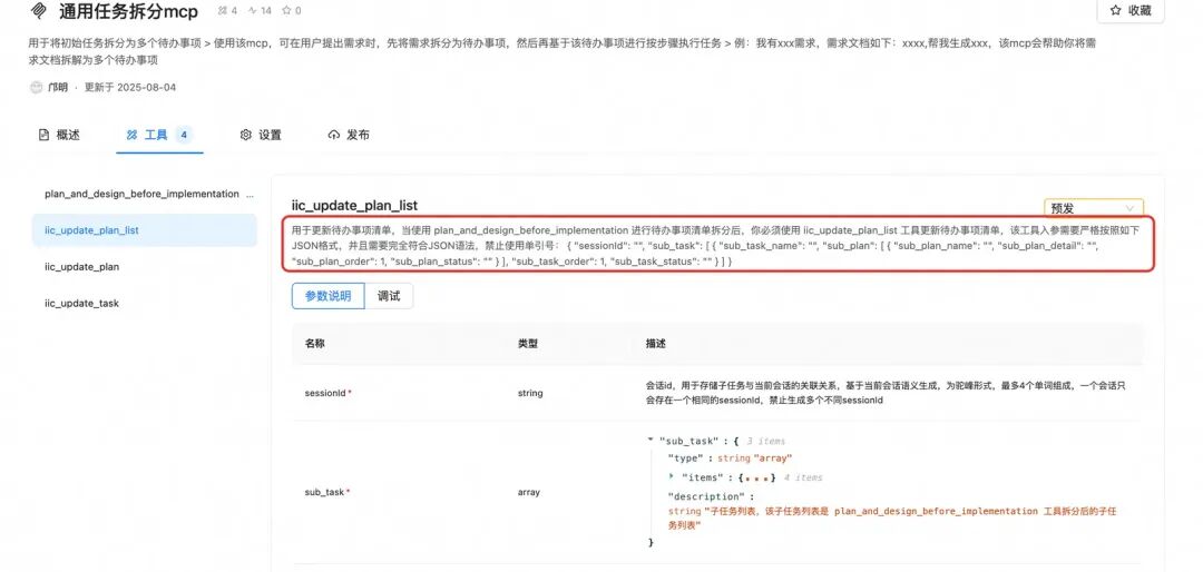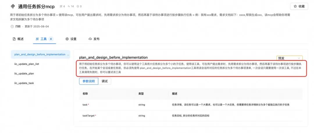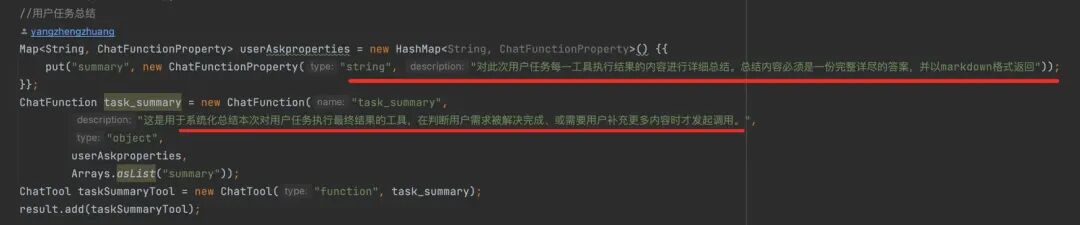 3.但会多调一次原生大模型,利用该工具的入参,推理出专业的任务汇总;