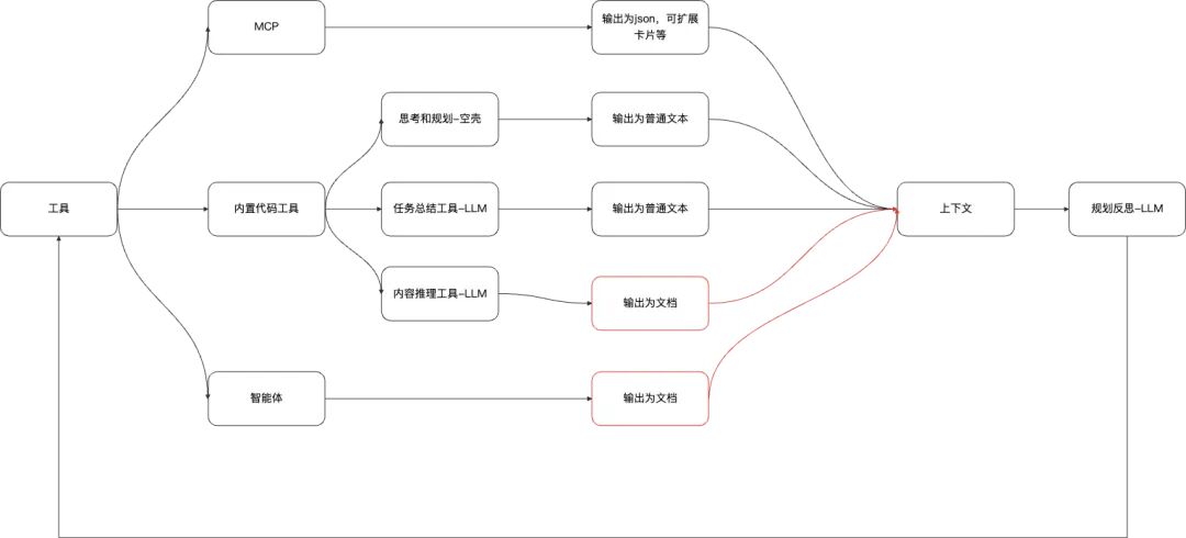 1.定义了一些特殊的文本生成工具,背后实际是单独的大模型调用,如创作类助理场景,生成PRD、生成系分等;