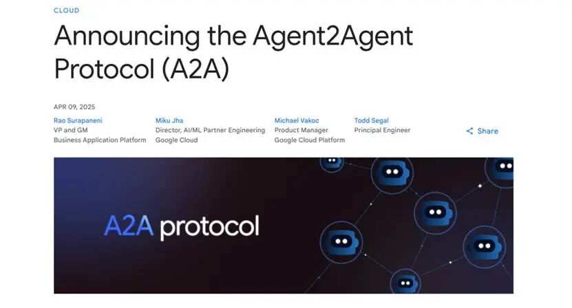 谷歌推出A2A协议,智能体跨平台协作时代到来