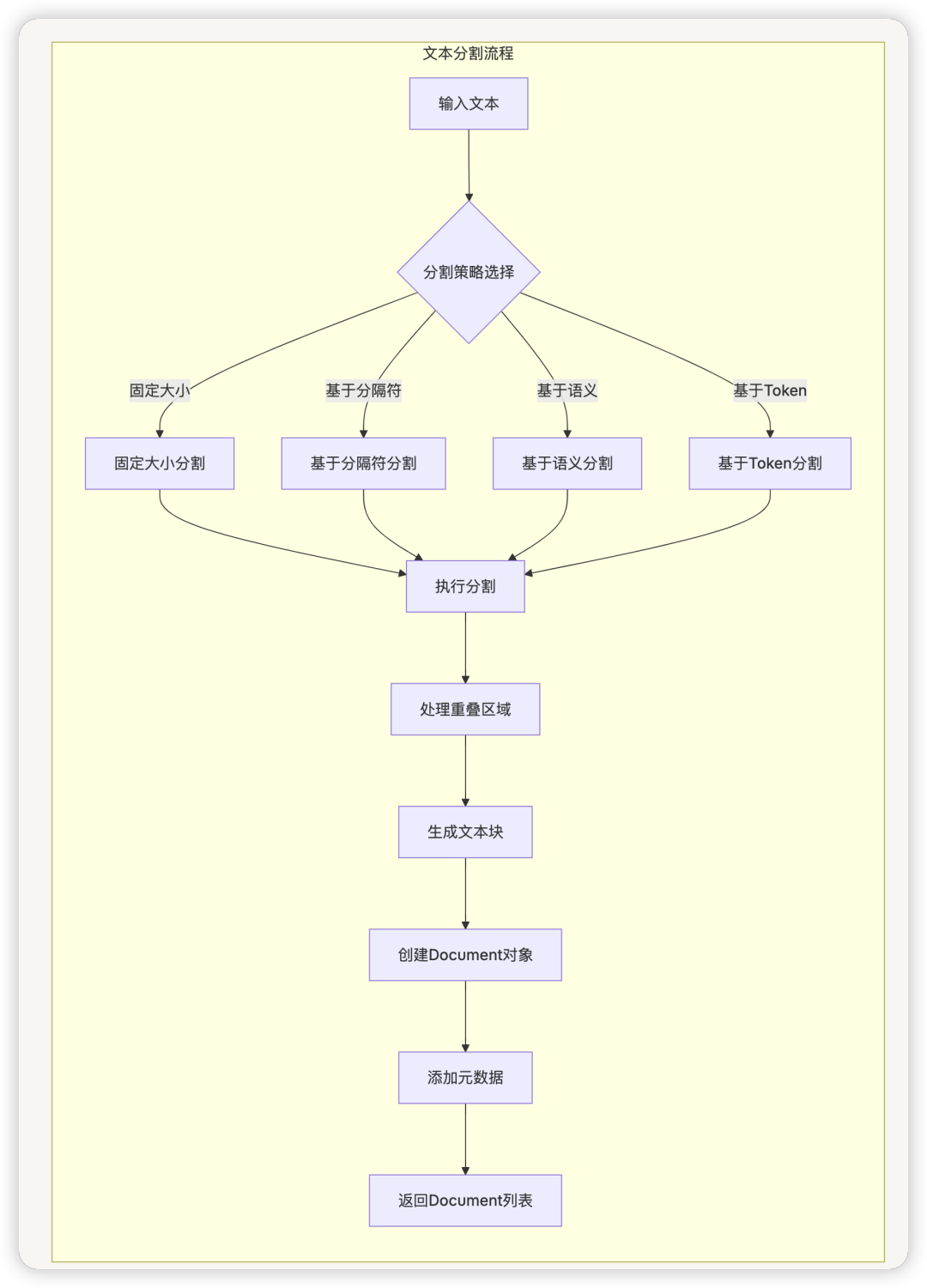 TextSplitter负责将长文本分割成适当大小的段落,是 RAG 系统性能的关键组件。它提供以下功能: