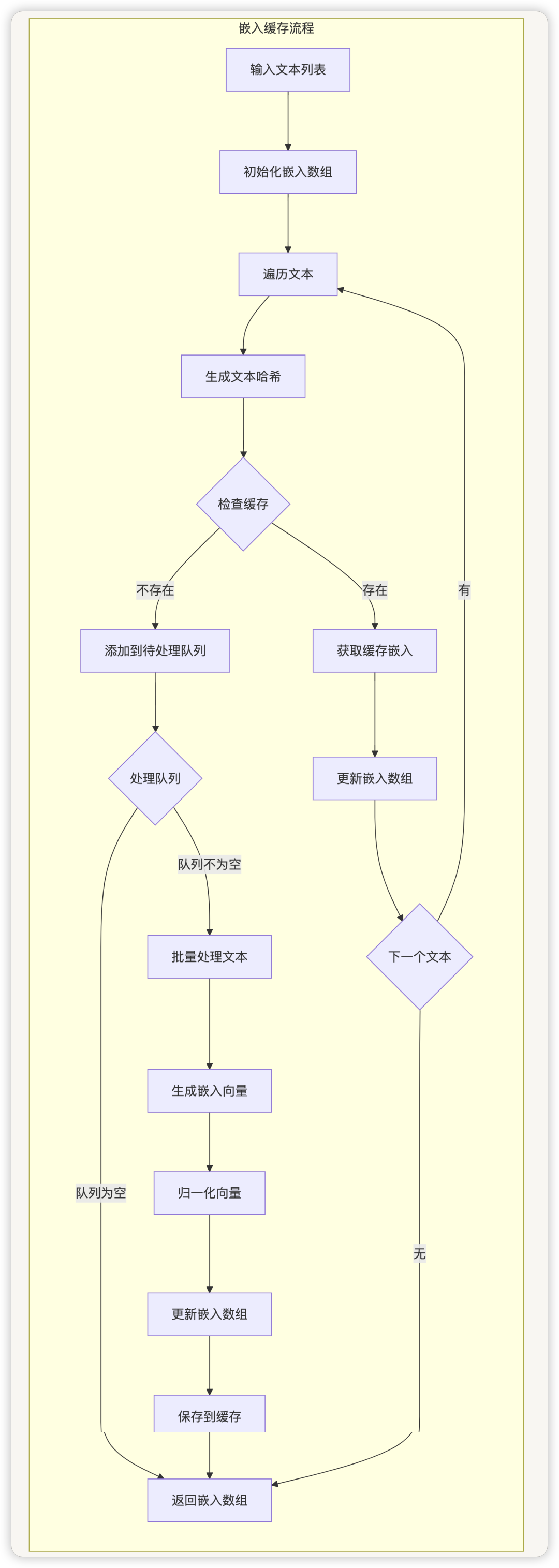 3. 高效的向量化:实现了嵌入缓存机制,提高了向量化效率。