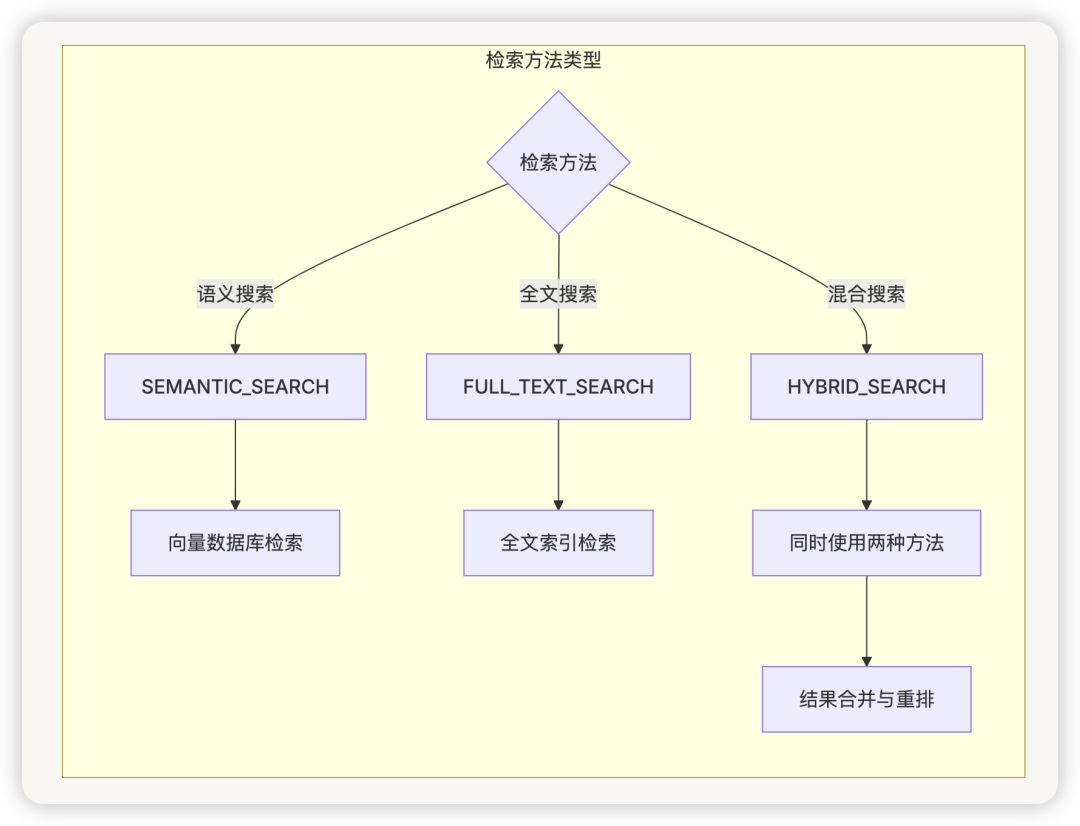 5. 多种检索方法:支持语义搜索、全文搜索、关键词搜索和混合搜索。
