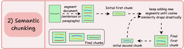 以向量相似度为例,将句子或段落转换为向量,通过计算相邻句段的余弦相似度,如果判断两个段落语义上属于同一单元,那么就进行合并。