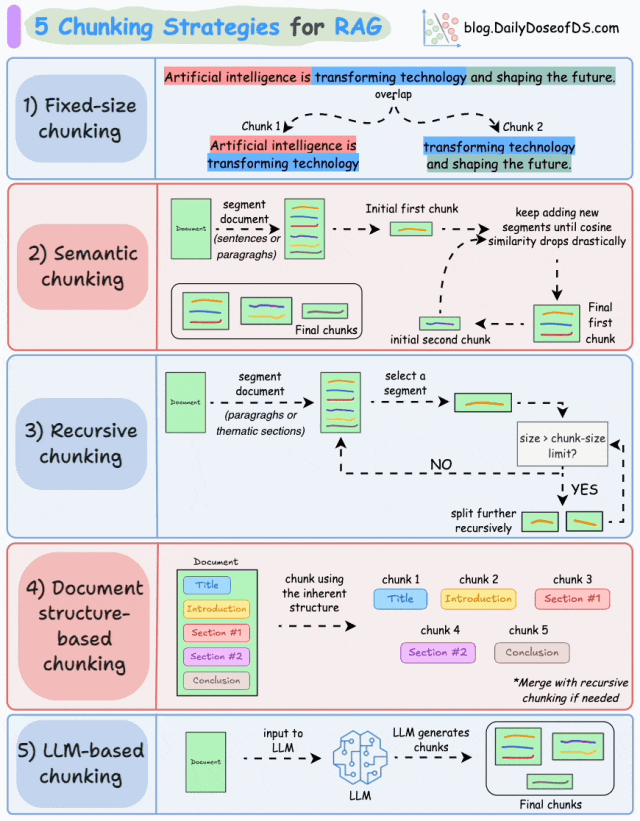 借助大语言模型来“理解”文档内容并主动划定分块边界。例如,提示模型判断哪些段落构成完整的语义单元,或根据任务需求生成最佳的分块方案。这种方式智能程度高,但计算成本也相对较大,适合高精度应用场景。