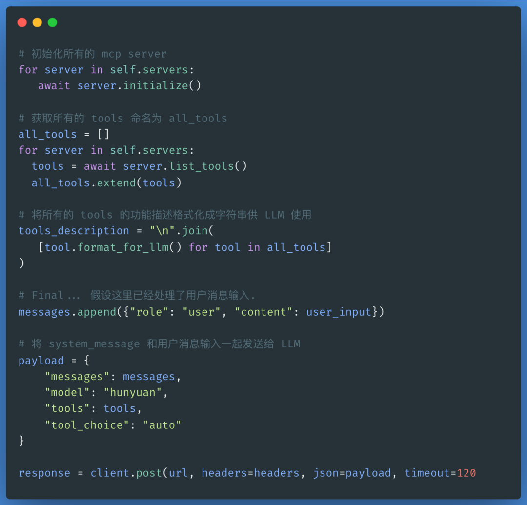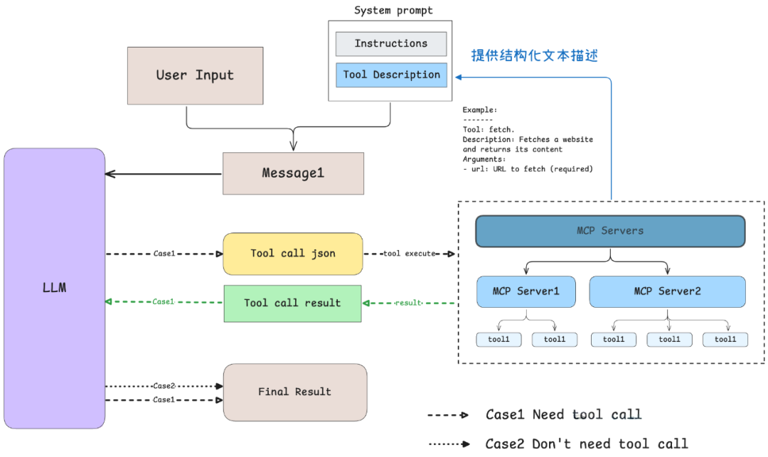 2.1 Host 调用 LLMHost 将用户 Query 和 Tools 一起发给 LLM。