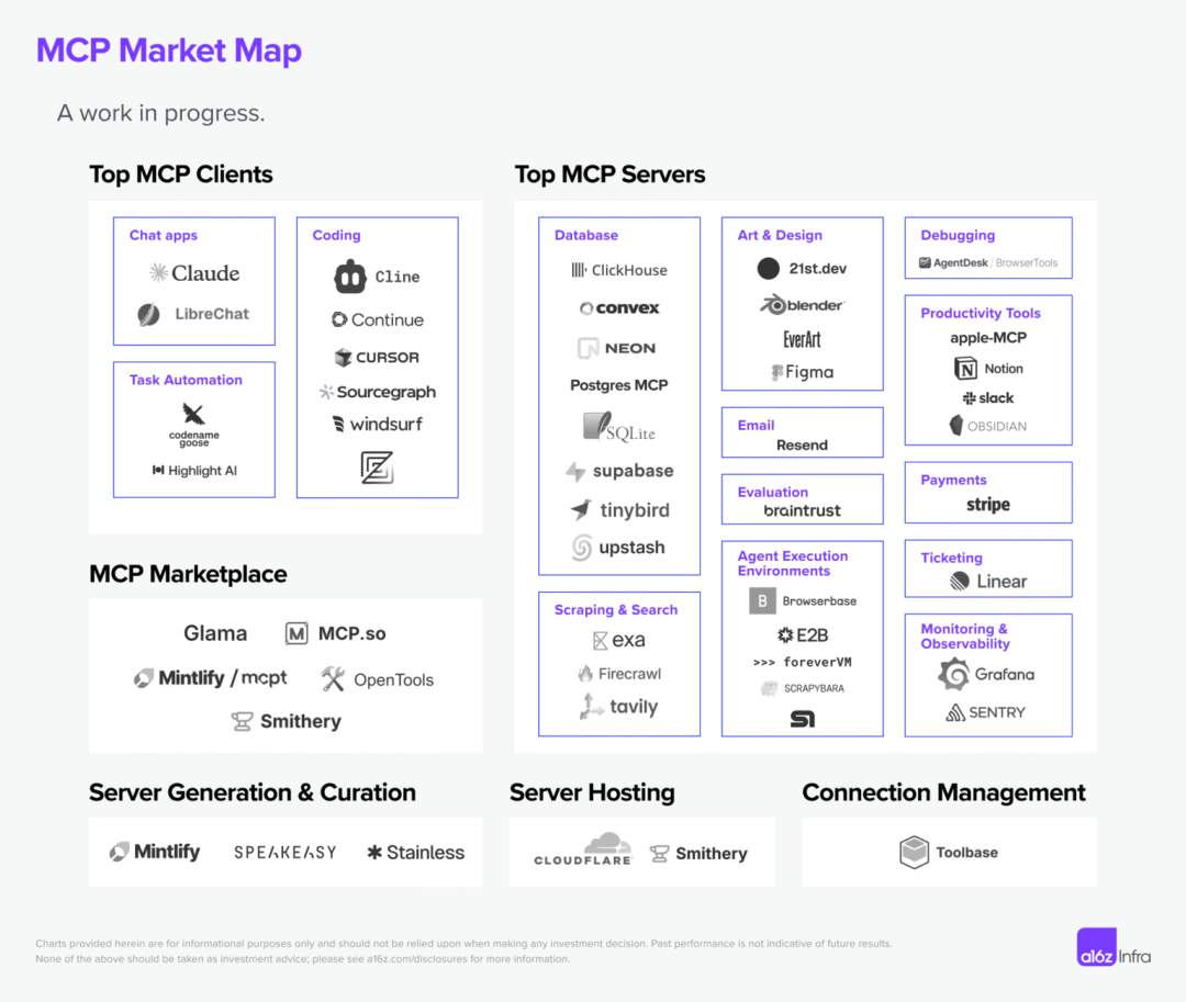 MCP OpenAPI化 MCP 将成为软件对外开放和集成的新协议,SaaS、应用服务将会以 MCP 方式提供对外服务,MCP 将成为与 OpenAPI 类似的对外服务协议。 应用交互重构 重构应用形态,智能助手将以“搜索框”的形式成为各个应用的交互入口,支持语音及自然语言交换形式,完成复杂任务的执行。 业务 E2E 自动化 端到端理解用户意图、执行任务、容错处理将大大简化用户业务流程,一句话自动完成下单、售后、流程审批等操作将变得更为常见。 生态开放协作 支付、生活服务、内容服务等服务作为基础能力,实现你中有我、我中有你,从而更大限度拓展服务生态的协作开放。例如,一个个人助手可以完成调用获取好友列表、差旅申请、支付流程等操作,实现在一个应用中通过集成多个服务的 MCP Server 来完成复杂业务,前提是 MCP 授权及安全有保证,且 MCP 具有广泛的应用场景。 5.2 技术限制当然,MCP 还处于发展初期,不可避免存在很多问题及缺陷,具体表现在: 应用范围受限 MCP Server 大部分以本地库方式执行,很大比例的 MCP Server 依赖于浏览器等外部工具,通常是以 Desktop App + MCP 方式执行,更适合个人 Assistant。企业应用一般在云端执行,这在一定程度限制了 MCP 的应用。 行业标准支持 当前在数据连接和交互领域有众多标准在竞争,MCP 协议只是其中之一,要想成为行业通用标准面临很大挑战。目前 MCP 主要依托 Anthropic 的 Claude 生态,缺少核心厂商的支持,但也看到像 OpenAI,以及阿里、腾讯也在积极拥抱 MCP。 对协议本质的质疑 MCP 本质上更像是 FunctionCall 与 Proxy 的组合,在这个角度上来看,MCP 只是对于 Agent 执行外部工具和访问外部资源做了规范,并未在更大范围内实现标准化。许多人质疑其是否能够称之为一个真正的协议。 安全风险 MCP Server 本地部署,被 Host 使用后将直接获得 Host OS 的访问权限,不安全的 MCP Server 将可能成为漏洞跳板。此外,不可信的 MCP Server 通过各种攻击手段也带来了诸多安全挑战。