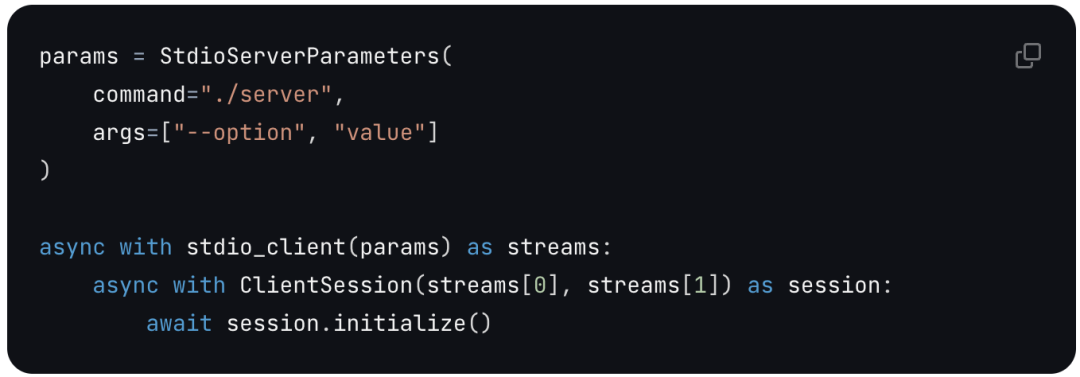1.2.2 MCP Client在 Host 应用内部,MCP Client 与 MCP server 保持 1:1 的连接。MCP Client 充当 LLM 和 MCP Server 之间的桥梁。简单理解就是 MCP Client SDK,用于实现 Host 应用使其能够与 MCP Server 交互。 1.2.3 MCP Host发起请求的 LLM 应用程序(例如 Claude Desktop、IDE 或 AI 工具)。通常像Claude Desktop 和 Cursor 这类智能助手应用和IDE,它们都是 MCP Host 应用,通过 MCP client 来连接某个 MCP Server,并调用其提供的工具。 另外值得注意的是,运行 MCP Host 应用所在的主机也属于 MCP Host 的一部分,主机的文件系统、浏览器等都可能成为 MCP Server 在运行时操作的对象。 1.3 通信协议MCP 采用 JSON-RPC 来编码消息,在 Sever 和 Client 之间通过标准输入输出和 Streamable HTTP 进行消息交换。 1.3.1 Standard Input/Output (stdio)采用标准输入/输出流进行传输,适用于在同一台机器上运行的客户端和服务器之间的通信。 Server