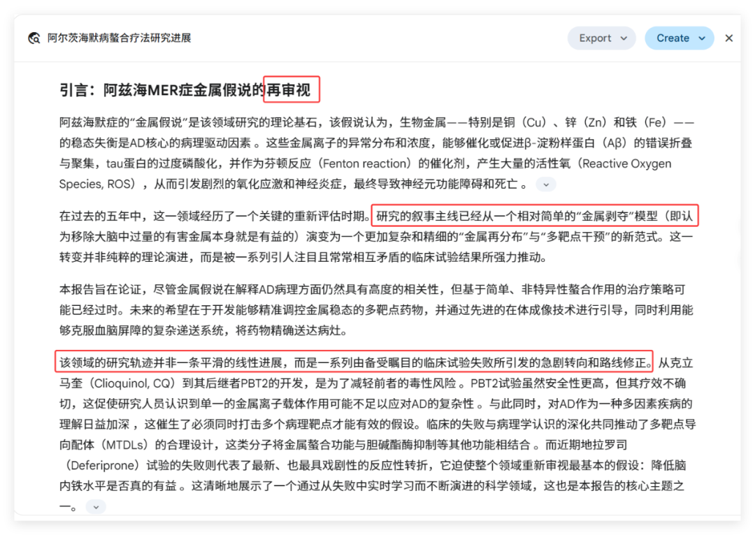 根据我给的主题和框架,应该能看出来是一篇学术类主题综述。这写出来的已经类似DeepSeek的风格了。然后,内容方面,也偏离了我给的内容框架,各种金属离子与AD的正负向作用原理一点没写,直接跳过了。
