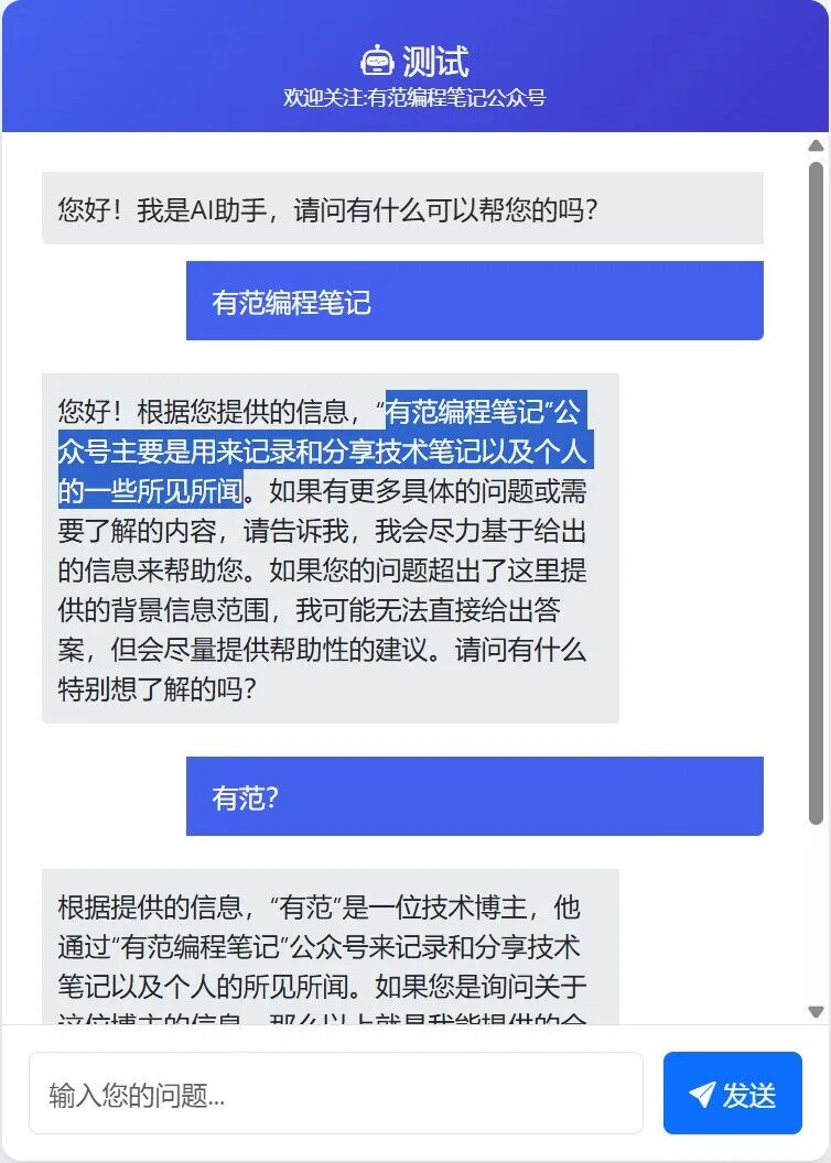 ingFang SC", "Hiragino Sans GB", "Microsoft YaHei UI", "Microsoft YaHei", Arial, sans-serif;padding-left: 8px;color: rgb(63, 63, 63);">快速开始ingFang SC", "Hiragino Sans GB", "Microsoft YaHei UI", "Microsoft YaHei", Arial, sans-serif;font-size: 16px;letter-spacing: 0.1em;color: rgb(63, 63, 63);">1.接入Sping Ai 、向量vector redis、检索 advisors-vector-store 框架。ingFang SC", "Hiragino Sans GB", "Microsoft YaHei UI", "Microsoft YaHei", Arial, sans-serif;font-feature-settings: normal;font-variation-settings: normal;font-size: 14.4px;margin: 10px 8px;color: rgb(201, 209, 217);background: rgb(13, 17, 23);text-align: left;line-height: 1.5;overflow-x: auto;border-radius: 8px;padding: 0px !important;"><dependency> <groupId>org.springframework.ai</groupId> <artifactId>spring-ai-starter-model-openai</artifactId> </dependency> <dependency> <groupId>org.springframework.ai</groupId> <artifactId>spring-ai-advisors-vector-store</artifactId> </dependency> <dependency> <groupId>org.springframework.ai</groupId> <artifactId>spring-ai-starter-vector-store-redis</artifactId> </dependency>ingFang SC", "Hiragino Sans GB", "Microsoft YaHei UI", "Microsoft YaHei", Arial, sans-serif;font-size: 16px;letter-spacing: 0.1em;color: rgb(63, 63, 63);">2.配置Ai模型和 api-key 、 向量模型。ingFang SC", "Hiragino Sans GB", "Microsoft YaHei UI", "Microsoft YaHei", Arial, sans-serif;font-feature-settings: normal;font-variation-settings: normal;font-size: 14.4px;margin: 10px 8px;color: rgb(201, 209, 217);background: rgb(13, 17, 23);text-align: left;line-height: 1.5;overflow-x: auto;border-radius: 8px;padding: 0px !important;">spring.ai.openai.base-url=https://dashscope.aliyuncs.com/compatible-mode/ spring.ai.openai.chat.options.model=qwen-max spring.ai.openai.api-key=${OPEN_API_KEY} spring.ai.openai.embedding.options.model=text-embedding-v4ingFang SC", "Hiragino Sans GB", "Microsoft YaHei UI", "Microsoft YaHei", Arial, sans-serif;font-size: 16px;letter-spacing: 0.1em;color: rgb(63, 63, 63);">3.配置 redis 连接、key前缀。ingFang SC", "Hiragino Sans GB", "Microsoft YaHei UI", "Microsoft YaHei", Arial, sans-serif;font-feature-settings: normal;font-variation-settings: normal;font-size: 14.4px;margin: 10px 8px;color: rgb(201, 209, 217);background: rgb(13, 17, 23);text-align: left;line-height: 1.5;overflow-x: auto;border-radius: 8px;padding: 0px !important;">spring.data.redis.host=localhost spring.data.redis.port=6379 spring.ai.vectorstore.redis.initialize-schema=true spring.ai.vectorstore.redis.index-name=custom-index spring.ai.vectorstore.redis.prefix=custom-prefixingFang SC", "Hiragino Sans GB", "Microsoft YaHei UI", "Microsoft YaHei", Arial, sans-serif;font-size: 16px;letter-spacing: 0.1em;color: rgb(63, 63, 63);">4.注入向量vector redis、增强检索QuestionAnswerAdvisor。ingFang SC", "Hiragino Sans GB", "Microsoft YaHei UI", "Microsoft YaHei", Arial, sans-serif;font-feature-settings: normal;font-variation-settings: normal;font-size: 14.4px;margin: 10px 8px;color: rgb(201, 209, 217);background: rgb(13, 17, 23);text-align: left;line-height: 1.5;overflow-x: auto;border-radius: 8px;padding: 0px !important;">publicVectoreRedisService(ChatClient.Builder builder,VectorStore vectorStore ){ this.vectorStore = vectorStore; this.chatClient = builder.defaultAdvisors(newQuestionAnswerAdvisor(vectorStore)) .build(); }ingFang SC", "Hiragino Sans GB", "Microsoft YaHei UI", "Microsoft YaHei", Arial, sans-serif;font-size: 16px;letter-spacing: 0.1em;color: rgb(63, 63, 63);">5.初始化知识库。publicvoidstoreVector(){ List<Document> documents = List.of( newDocument("有范编程笔记公众号是记录和分享技术笔记,及个人的所见所闻。"), newDocument("有范是一个技术博主")); this.vectorStore.add(documents); }