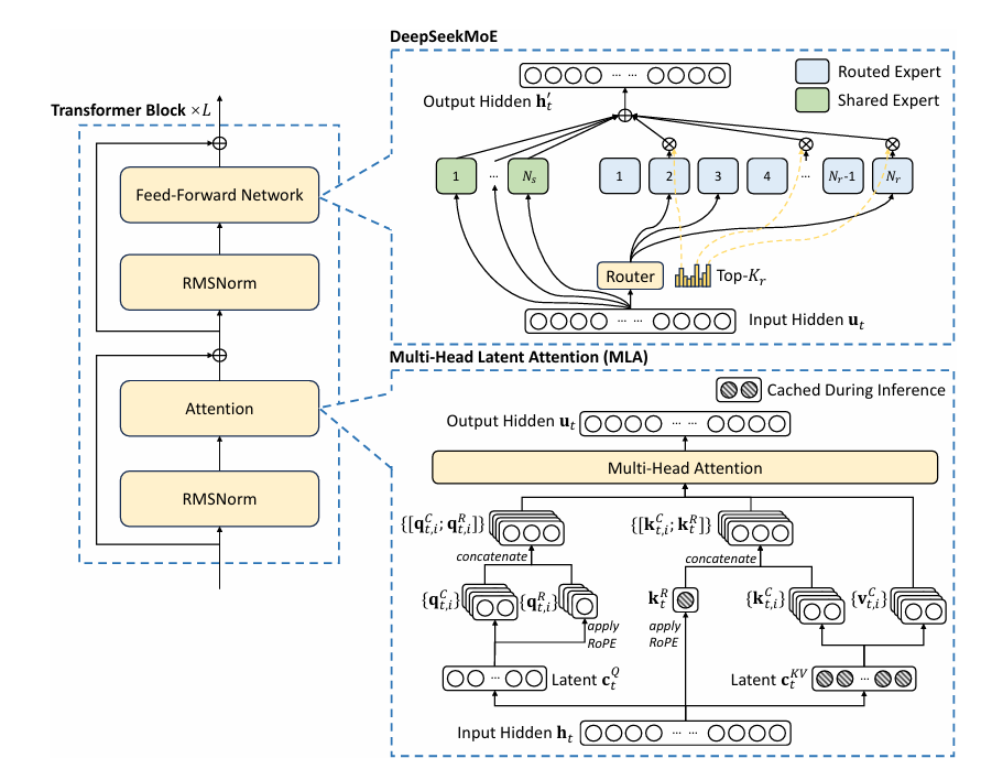 ·创新引入多头潜在注意力(MLA),大幅减少推理过程中的 KV 缓存;