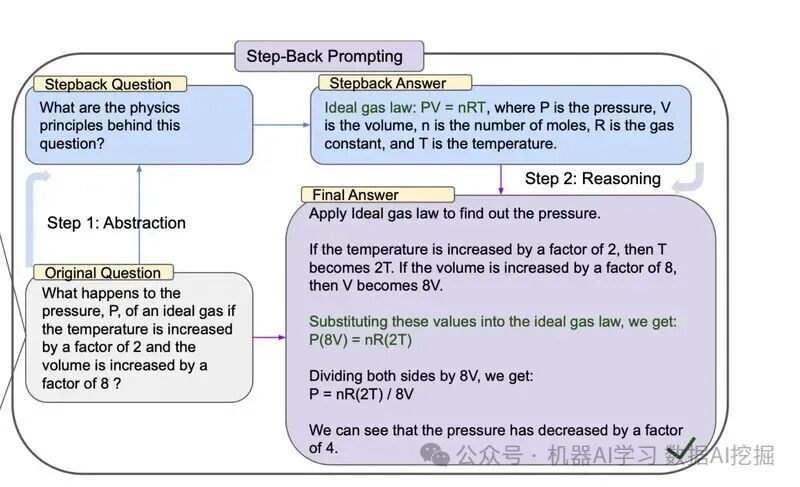 StepBack-promptStepBack-prompt方法鼓励语言模型超越具体例子,专注于更广泛的概念和原则。 这个模板复制了“Step-Back”提示技术,该技术通过首先提出一个“step back”问题来提高对复杂问题的性能。这种技术可以通过为原始问题和step-back问题检索信息,与标准的问题回答RAG应用程序结合使用。下面是一个step-back提示的例子。