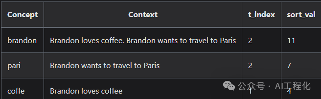 从问题中存在的概念的上下文开始称之为“基本概念”。在这种情况下,它只是“pari”。上下文只是一句“Brandon wants to travel to Paris”。然后,按照sort_val递减的顺序,为上一步中找到的概念的上下文做准备。这提供了传递给LLM的上下文: