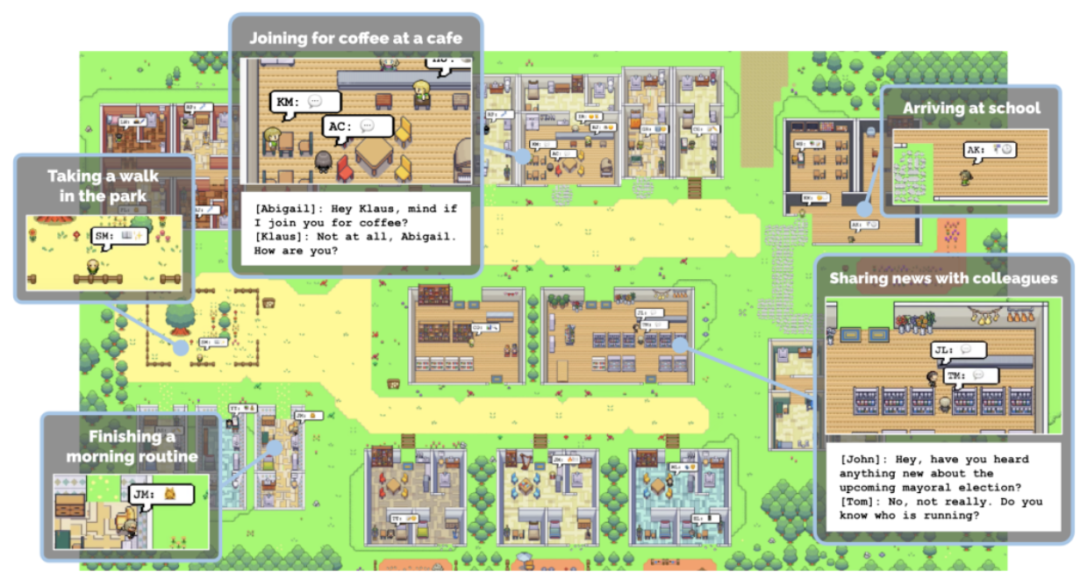 斯坦福小镇,每个小人都是一个 Agent 智能体,他们有自己的行为和记忆