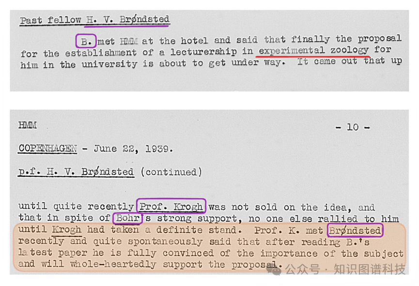 此外,我们还注意到奥古斯特·克罗(August Krogh)是玻尔的主要合作伙伴之一,基于他的个人关系网络,他与布龙斯特德之间也存在着一种TALKED_ABOUT 关系,这对研究者进行了积极的评价。