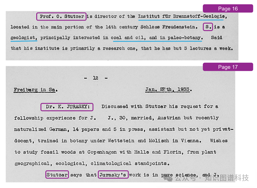 在这种情况下,ODE的一个页面上明确提到了O. Stutzer教授,然后在同一页上以S.的名字提到,接着又在下一页上以Stutzer的名字提到。此外,这些提及与组织机构、职业和其他人的提及相关联。