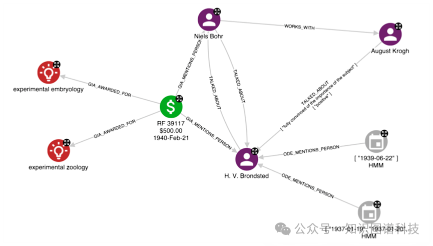 这样的日记起到了重要的作用,因为其中报告的对话和交互可能导致特定研究项目的资助。然而,要理解RF资助流程的动态驱动因素是复杂的,需要生成以知识图谱(KG)形式塑造的良好结构化数据。以尼尔斯·玻尔为例:他对理解原子结构做出了重要贡献,但根据维基百科报道,他还是科学研究的推动者。在ODs上创建的KG揭示了这种支持性活动是如何具体实现的。