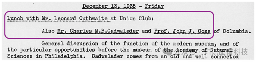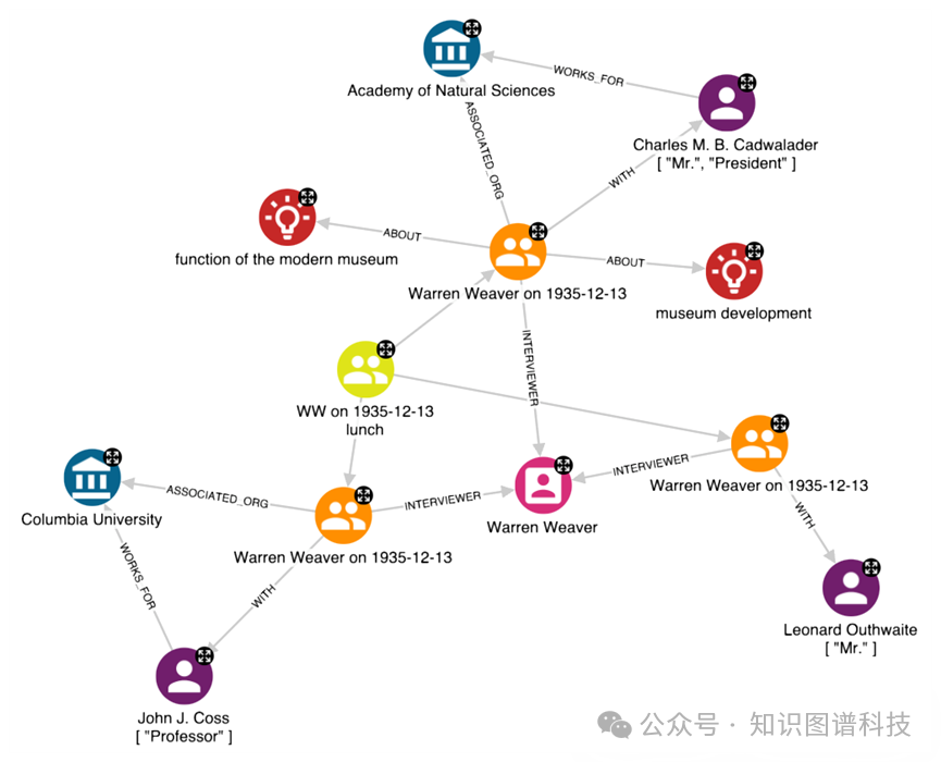 模型正确地识别出了1935年12月13日,沃伦·韦弗(WW)与约翰·J·科斯教授(以及其他人)之间关于现代博物馆功能的午餐对话。