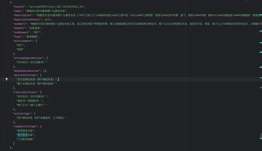 大模型只能通过工具的整体描述、出入参描述来理解工具,因此描述的质量决定了模型决策的质量。我们规范了工具描述必须包含:基本信息、功能信息、出参信息、排查辅助等。 ##基本信息###工具平台:kbt###运行环境:线下、预发###作者: