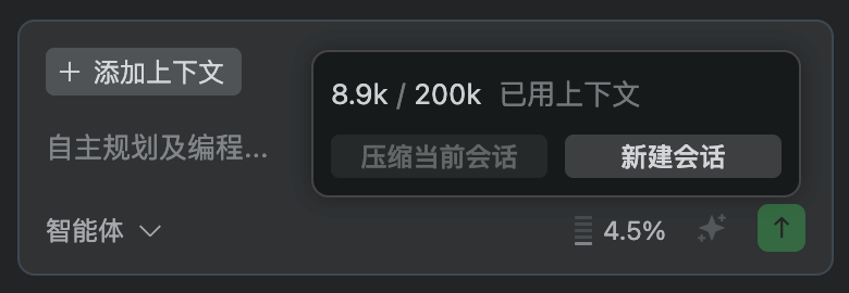 你可以根据上下文使用情况自主判断是否「压缩当前会话」还是「新建会话」,如果如果你没来得及手动压缩就超过上下文窗口,也不用担心,因为在超过上下文窗口时,Qoder 就会帮我们自动压缩。