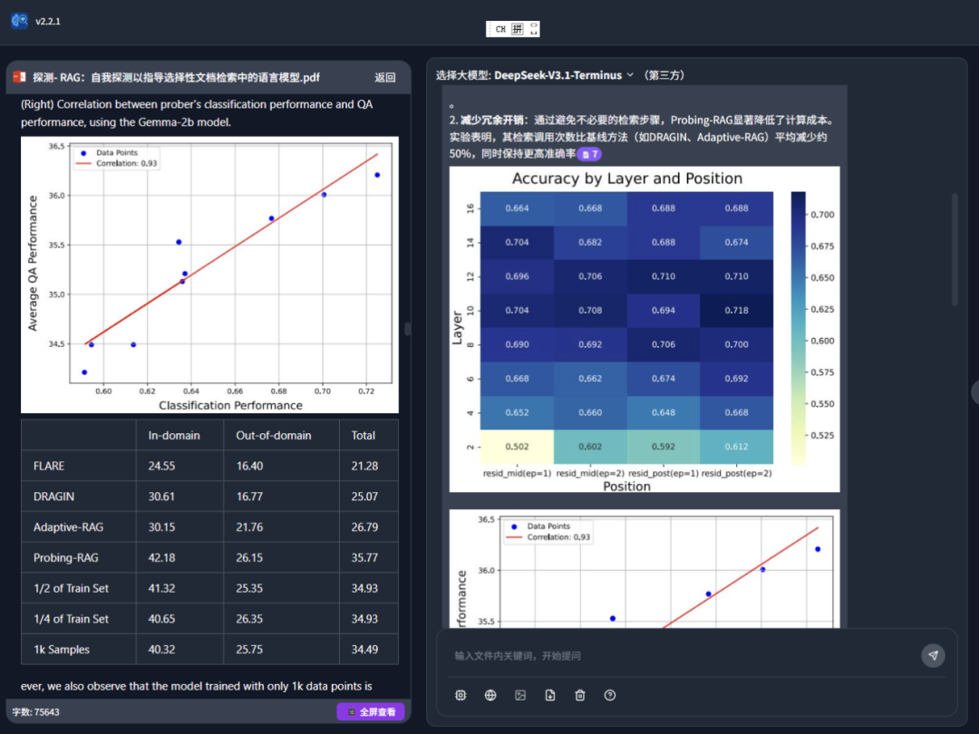 DeepSeekMine是绿色软件,放心安装。 第三步,打开软件,上传文件,提问即可,如上面所说零配置, 开箱即用: 最新版还有哪些更新? 1)支持用户在回答内容中点击引用编号,系统将自动跳转至文档中对应的引用位置,直接展示原文内容: 该功能使引用追溯更加直观高效,大幅提升信息查阅与验证的便捷性,根据我们的产品调研,在国内DeepSeekMine是首家支持此功能的知识库软件。 2)算法优化与事实检索准确率提升 底层检索算法全面升级,事实性纯检索任务的正确率显著提高,平均稳定达到 90% 以上。 系统在信息定位、语义匹配、事实一致性判断等方面的表现更加可靠。 3)新增联网搜索功能 实现在线搜索与引用系统的深度整合,可在回答中实时引用互联网最新信息。内容引用方式统一规范,确保生成内容既即时又可验证: 更多新增功能,欢迎下载和安装体验,目前Windows版本已经发布了最新版,Mac最新版我们会尽快打好包,然后同步到官网。 DeepSeekMine历经大半年迭代,功能越来越完善,但还没有完全达到我们的满意度,还是会有一些bug,我们会有偶尔停业休整,但一定不会放弃,从一而终,一直迭代下去。 预告v3:1)DeepSeekMine转为更强智能体,能够处理应对更加复杂的多任务 2)继续提升RAG精度 总结一下 DeepSeekMine 是一款零配置、本地化、多模态智能知识库软件,可自动解析和学习你电脑中的各类文档(含 PDF、图片、表格、公式等)。 V2.2.1 版本全面升级了文档解析、事实检索准确率、多模态理解、长上下文支持与引用跳转等核心能力,使用更稳定、准确、可视化更强。 下载即可使用:上传文件、立即提问,所有数据本地存储,安全高效,是当前易上手且功能正在日趋完善的本地知识库解决方案之一。 |