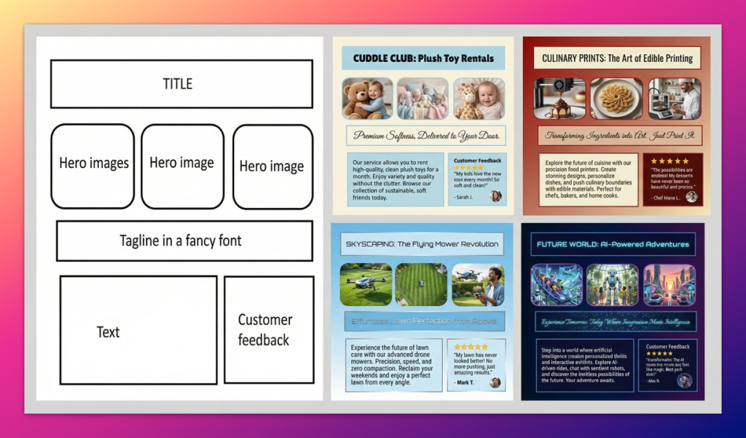 - 草图:上传一张手绘草图,精确定义文字和物体应该放在哪里。