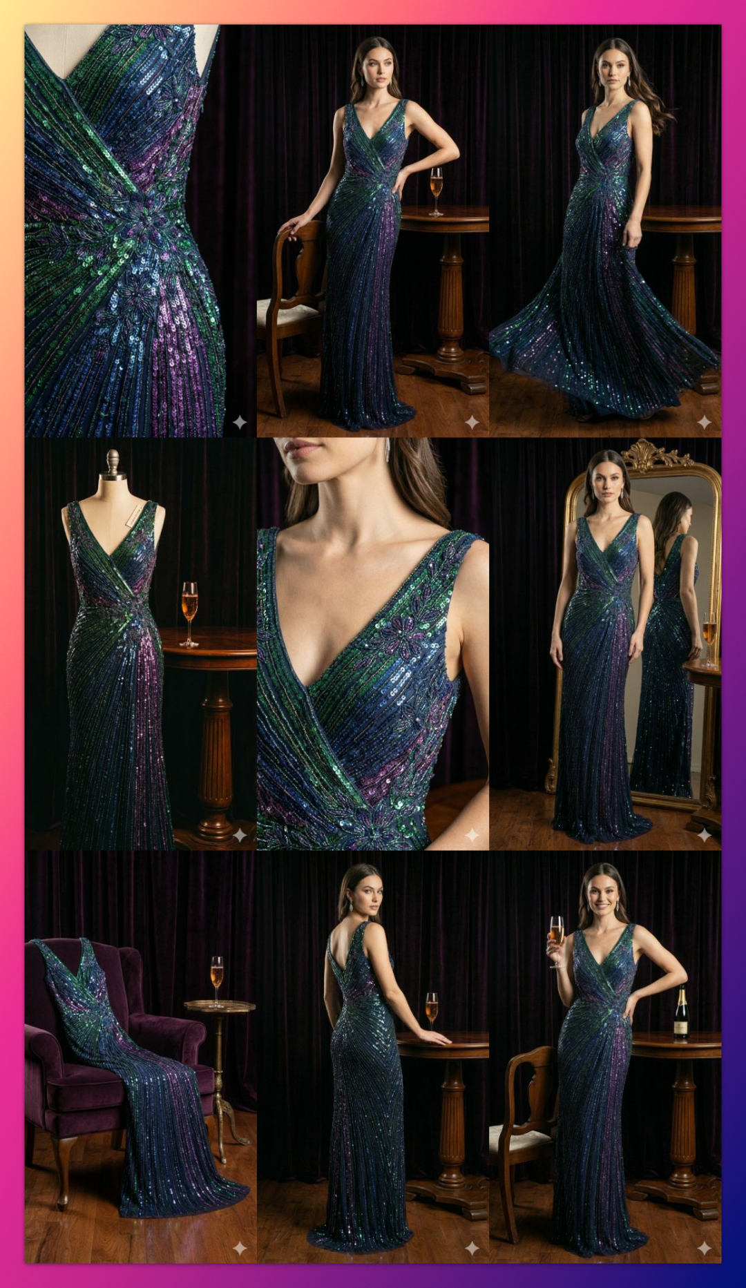 “创作 9 张惊艳的时尚大片,像获奖级别的时尚杂志编辑作品。以这张图为品牌风格参考,但要增加细节和变化,展现专业设计感。请一张一张生成。”