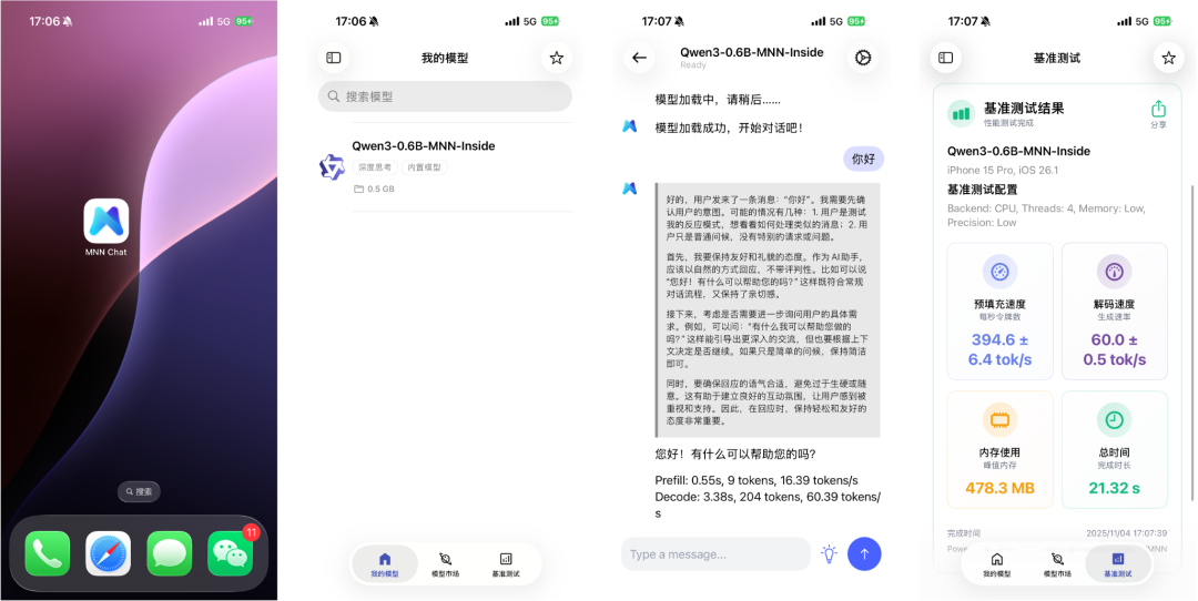 ingFang SC", system-ui, -apple-system, BlinkMacSystemFont, "Helvetica Neue", "Hiragino Sans GB", "Microsoft YaHei UI", "Microsoft YaHei", Arial, sans-serif;font-size: 17px;font-style: normal;font-variant-caps: normal;font-weight: 400;letter-spacing: 0.544px;text-align: justify;text-indent: 0px;text-transform: none;white-space: normal;word-spacing: 0px;-webkit-text-stroke-width: 0px;text-decoration: none;line-height: 1.6em;visibility: visible;box-sizing: border-box !important;overflow-wrap: break-word !important;">上一期,我们把 Qwen3 装进了树莓派,用一块 OLED 屏和一个九键键盘,打造出了一台真正离线对话的“电子鹦鹉”。ingFang SC", system-ui, -apple-system, BlinkMacSystemFont, "Helvetica Neue", "Hiragino Sans GB", "Microsoft YaHei UI", "Microsoft YaHei", Arial, sans-serif;font-size: 17px;font-style: normal;font-variant-caps: normal;font-weight: 400;letter-spacing: 0.544px;text-align: justify;text-indent: 0px;text-transform: none;white-space: normal;word-spacing: 0px;-webkit-text-stroke-width: 0px;text-decoration: none;line-height: 1.6em;visibility: visible;box-sizing: border-box !important;overflow-wrap: break-word !important;">本期,主战场转向你最熟悉的设备——手机。我们将通过MNN + Qwen,手把手完成端侧大模型的部署、运行与调优。ingFang SC", system-ui, -apple-system, BlinkMacSystemFont, "Helvetica Neue", "Hiragino Sans GB", "Microsoft YaHei UI", "Microsoft YaHei", Arial, sans-serif;font-size: 17px;font-style: normal;font-variant-caps: normal;font-weight: 400;letter-spacing: 0.544px;text-align: justify;text-indent: 0px;text-transform: none;white-space: normal;word-spacing: 0px;-webkit-text-stroke-width: 0px;text-decoration: none;line-height: 1.6em;visibility: visible;box-sizing: border-box !important;overflow-wrap: break-word !important;">本教程完全遵从你的开发习惯:先上手体验,再深入源码,最后进阶调优。无论你是想快速验证创意,还是希望深度定制自己的端侧 AI 应用,这里都提供一条清晰、可复现的全链路路径。ingFang SC", system-ui, -apple-system, system-ui, "Helvetica Neue", "Hiragino Sans GB", "Microsoft YaHei UI", "Microsoft YaHei", Arial, sans-serif;font-variant-ligatures: normal;orphans: 2;widows: 2;text-decoration-thickness: initial;background-color: rgb(255, 255, 255);line-height: 1.6em;visibility: visible;"> ingFang SC", system-ui, -apple-system, BlinkMacSystemFont, "Helvetica Neue", "Hiragino Sans GB", "Microsoft YaHei UI", "Microsoft YaHei", Arial, sans-serif;font-size: 17px;font-style: normal;font-variant-caps: normal;font-weight: 400;letter-spacing: 0.544px;text-align: justify;text-indent: 0px;text-transform: none;white-space: normal;word-spacing: 0px;-webkit-text-stroke-width: 0px;text-decoration: none;line-height: 1.6em;visibility: visible;box-sizing: border-box !important;overflow-wrap: break-word !important;"> ingFang SC", system-ui, -apple-system, BlinkMacSystemFont, "Helvetica Neue", "Hiragino Sans GB", "Microsoft YaHei UI", "Microsoft YaHei", Arial, sans-serif;font-size: 17px;font-style: normal;font-variant-caps: normal;font-weight: 400;letter-spacing: 0.544px;text-align: justify;text-indent: 0px;text-transform: none;white-space: normal;word-spacing: 0px;-webkit-text-stroke-width: 0px;text-decoration: none;line-height: 1.6em;visibility: visible;box-sizing: border-box !important;overflow-wrap: break-word !important;">在开始之前,让我们先快速了解一下本次实战的几位“主角”。- ingFang SC", system-ui, -apple-system, BlinkMacSystemFont, "Helvetica Neue", "Hiragino Sans GB", "Microsoft YaHei UI", "Microsoft YaHei", Arial, sans-serif;font-size: 17px;font-style: normal;font-variant-caps: normal;font-weight: 400;letter-spacing: 0.544px;text-align: justify;text-indent: 0px;text-transform: none;white-space: normal;word-spacing: 0px;-webkit-text-stroke-width: 0px;text-decoration: none;line-height: 1.6em;visibility: visible;box-sizing: border-box !important;overflow-wrap: break-word !important;">MNN:阿里巴巴开源的端侧推理引擎,具备高性能、轻量级、高通用性的特点。