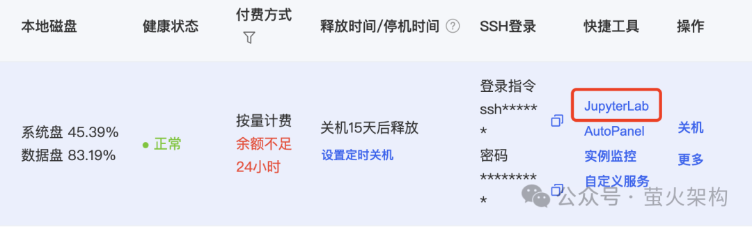 实例启动后,在服务器实例列表中点击“JupyterLab”,进入一个Web页面。