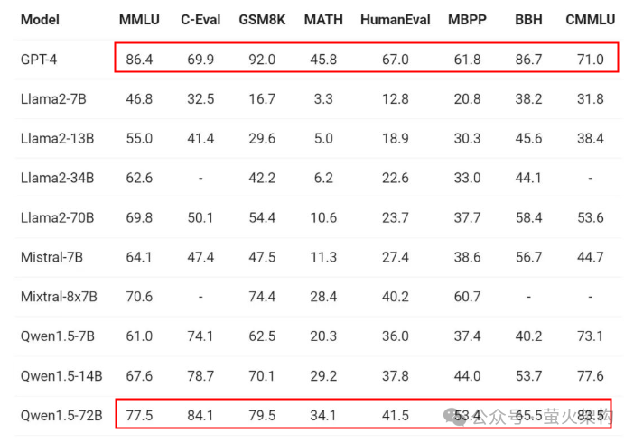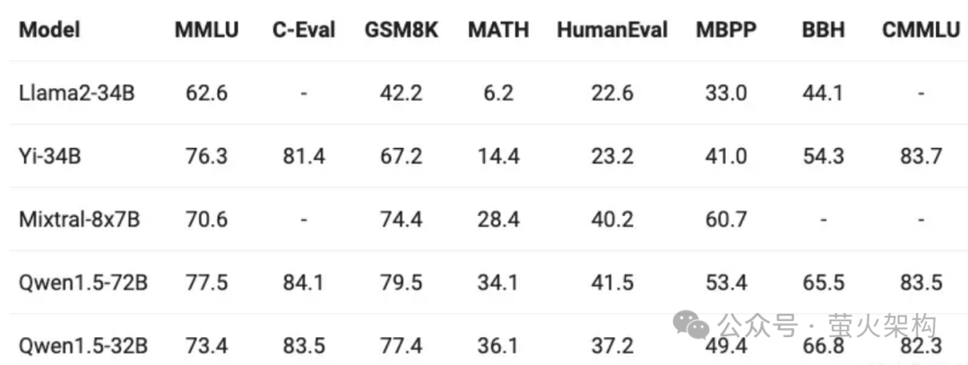 相比之前开源的Qwen-1.5-72B,Qwen1.5-32B参数少了一多半,但是测试表现并没有相差多少。