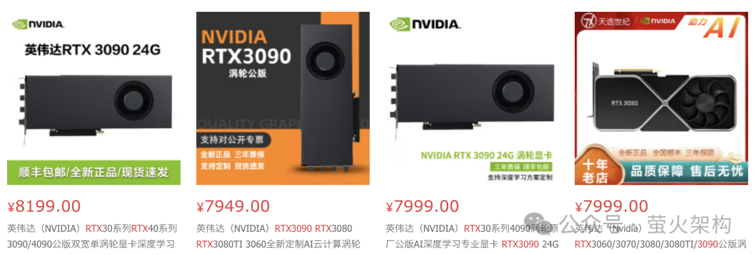 大语言模型文件中的主要内容就是参数,参数少了一半,模型的文件大小也会小一半,那么加载到显存时占用的空间也会小一半。大家可能都知道现在显卡比较紧俏,我特地到京东查了一下,消费级的3090在8K左右,4090已经飙升到了1.5个W左右。