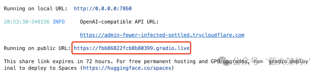 启动成功后,我们可以看到一个Gradio的链接,点击就会在浏览器打开 text-generation-webui。
