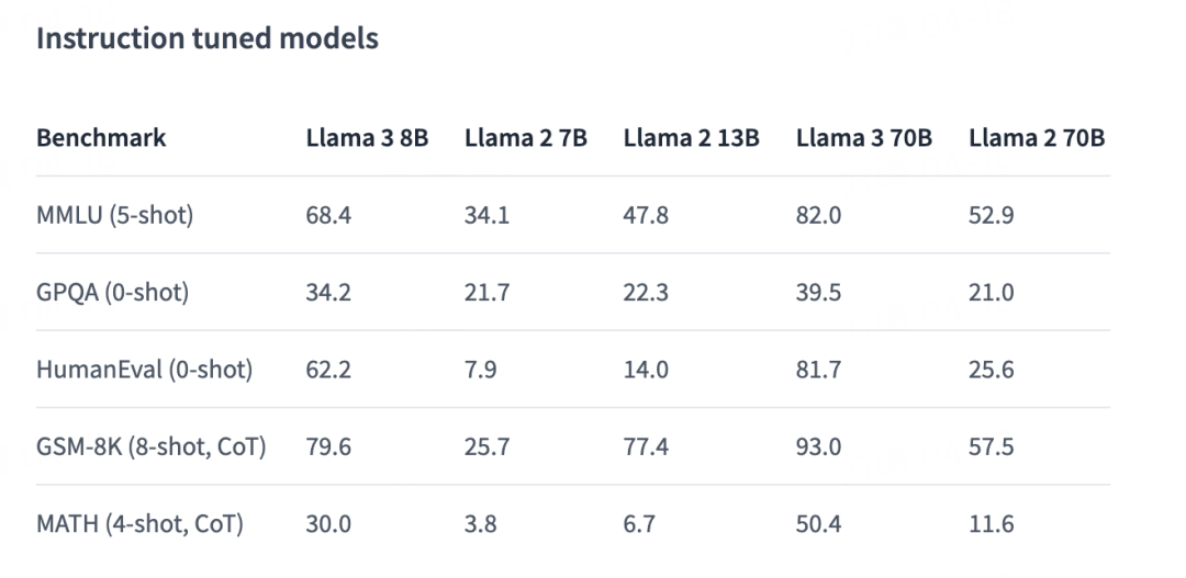 • Llama3-8B 使用了与 Llama2 模型不同的分词器(tiktoken 而非 sentencepiece)。