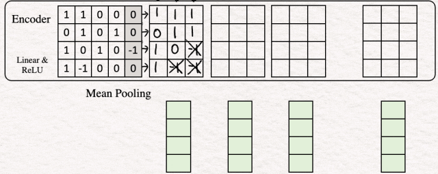 [2]编码:下一步是对词嵌入进行编码序列特征处理,每个词一个。对于我们的示例,编码器是一个简单的采集器,由带有 ReLU 激活函数的线性层组成。