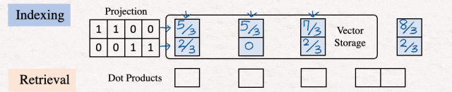 [4]索引:下一步涉及减少文本嵌入向量的维度,这是在投影矩阵的帮助下完成的。该投影矩阵可以是随机的。这里的想法是获得一个简短的表示,这将允许更快的比较和搜索。