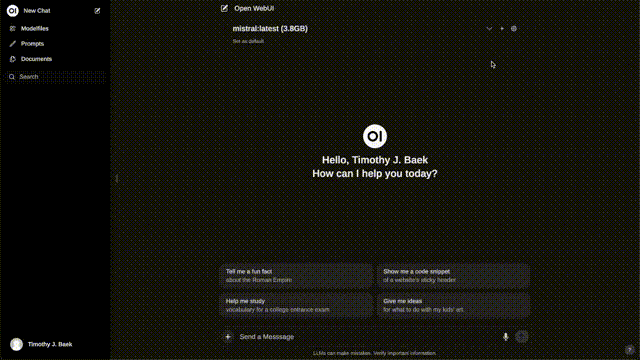 我们可以通过Ollama加载自定义模型,模型交付给Open Web UI,看起来像这样: