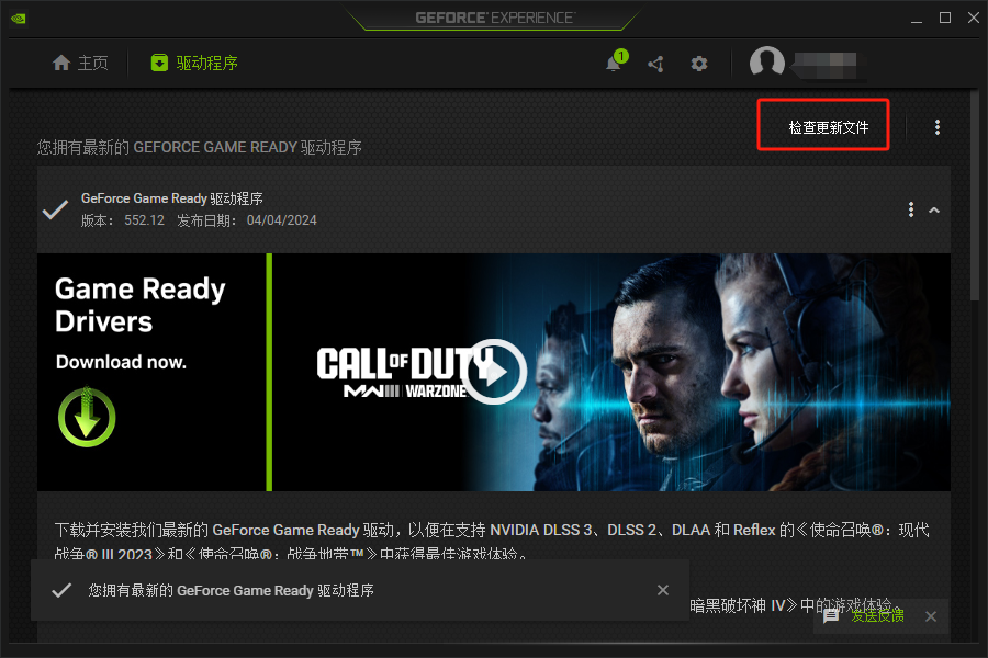首先更新显卡驱动到最新版本,可以去官网下载或者直接在NVIDIA Geforce Experience中直接更新驱动到最新版本,新版本的驱动向下兼容更多版本的CUDA。