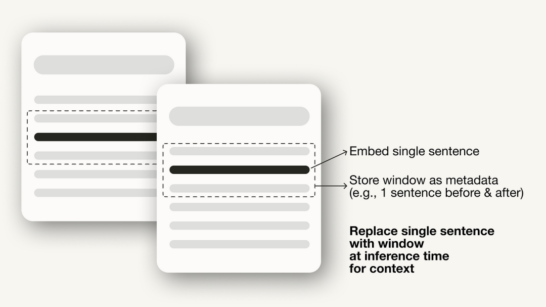 PensioneWindowNodeParser主要实现如下两个步骤: 它将文档分隔为单个句子,这些句子将被嵌入; 对于每个句子,它都会创建一个上下文窗口。如果指定window_size=3,则生成的窗口将有三个句子长,包括嵌入句子的前一个句子和后面一个句子。该窗口将作为元数据存储。