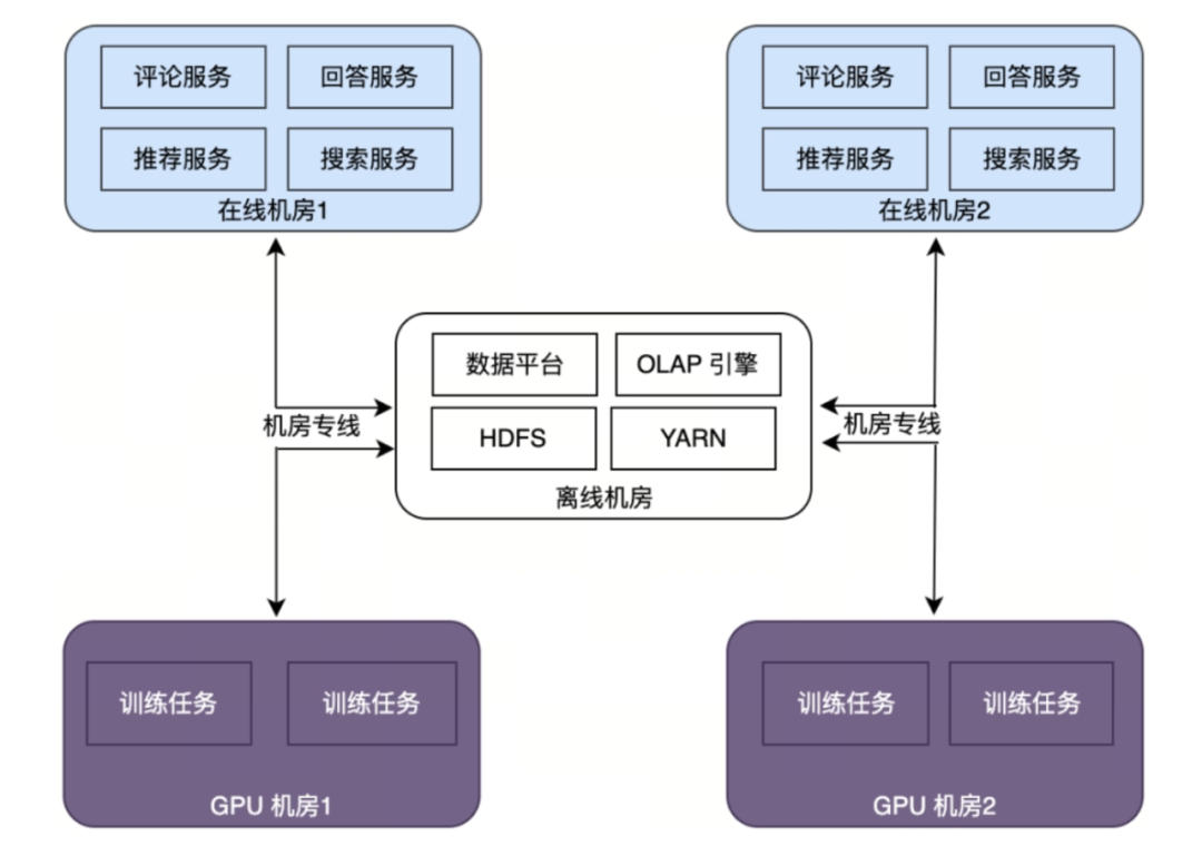 在线机房:此机房专为知乎主站提供直接面向用户的服务而设计。其中包括评论、回答、搜索、推荐等核心服务。在线机房的重点在于实时性和响应速度,以确保用户能够在最短的时间内获得稳定、高效的服务体验。知乎主站作为一个知识社区,其在线机房是为了保障用户对知识和信息的交流与分享能够得到优质、连续的支持。