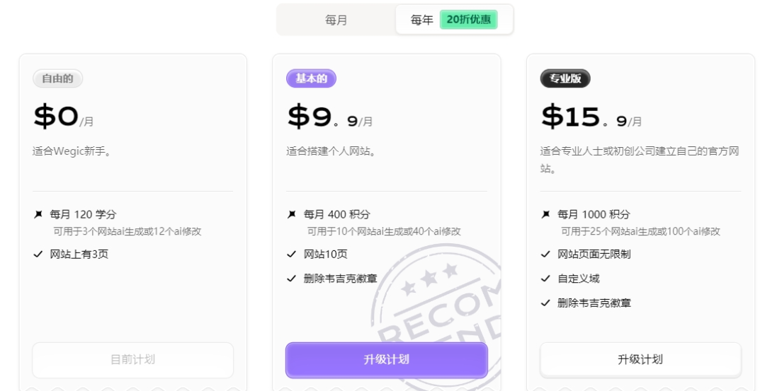 Wegic AI 费用